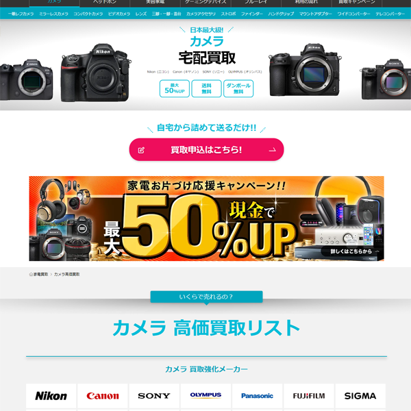全国対応・査定無料。フィルムカメラ・最新のデジタル一眼レフ・大量にあるカメラや周辺機器など幅広く買取