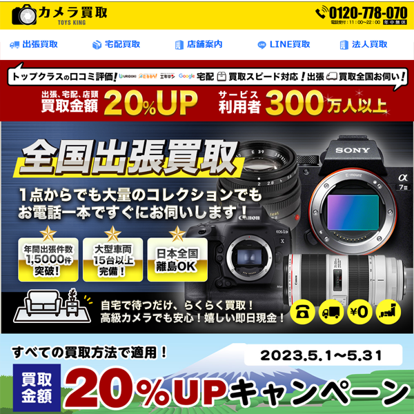 「大事なカメラをなるべく高く売りたい」と考える人は出張買取も検討しましょう。
